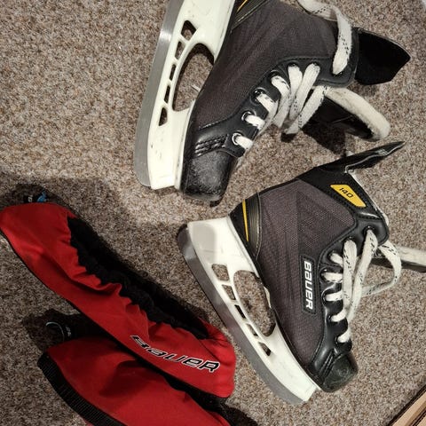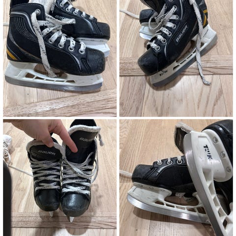 Bauer Jääkiekko luistimet, lasten koko 32. Luistimet ovat mustat ja suunniteltu jääkiekkoiluun. Pohjallisen sisämitta 20,5 cm.