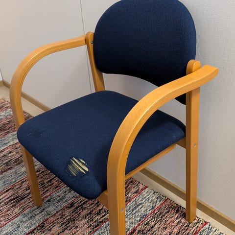 Kestävä metalliputki runkoinen tuoli, kangas päällyste. Ollut sisällä/ulkona apujakkarana ja kohtuu likainen.