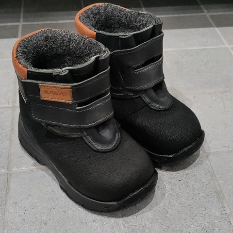 Lasten talvikengät (koko 22). Pientä kulumaa kengän kärjissä, muuten hyväkuntoiset.