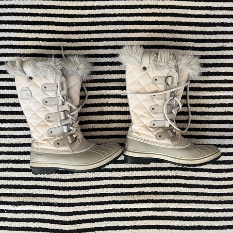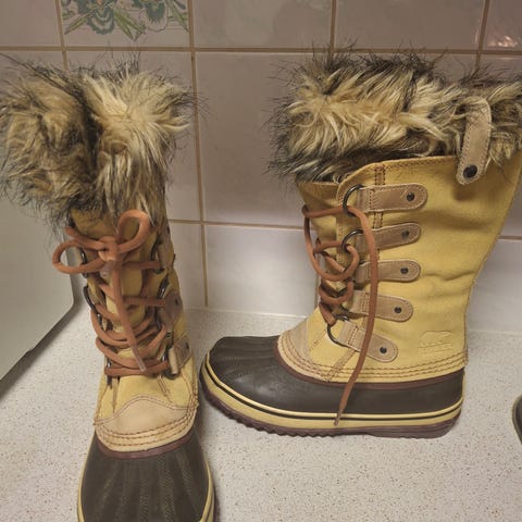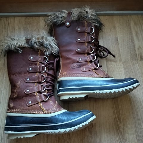 Sorel NL2142-286 Joan Of Arctic Knit talvisaappaat. Irrotettava sisäkenkä huopaa, varsi nahkaa. Vedenkestävät. Valmistajan mukaan lämpimämä pitäis pysyä -25°C saakka, mutta ompa näillä hyvin pärjätty -38°C villasukan kans.