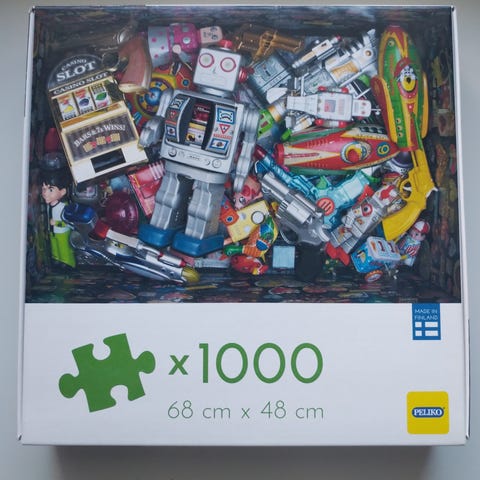 Palapeli, jossa on 1000 palaa. Avaamaton, edelleen muovissa. Leikkiviä poikia rannalla, Albert Edelfelt.