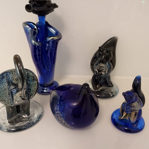 Lasiesineet koriste-esineet eri väreissä ja muodoissa