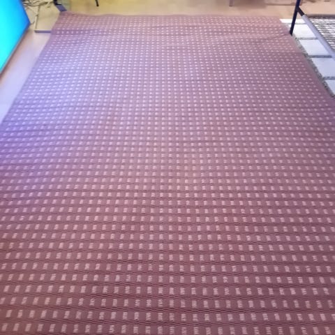 Punainen matto, jossa kapeat raidat.