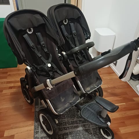 Ostan hyväkuntoiset Bugaboon tuplarattaat, joko 3 tai 5 malli. Värissä all black (ei saa olla haalistumaa kuomuissa). Myös harmailla kankailla olevia voi tarjota.