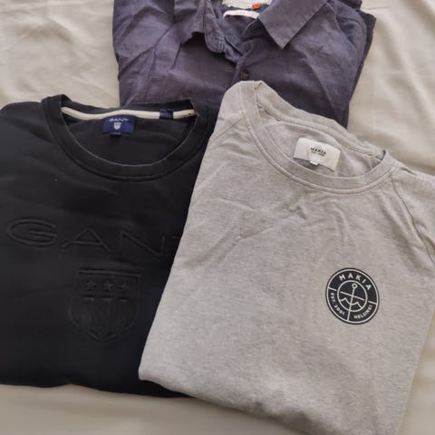 Miesten t-paitoja 8 kpl settinä. Gant, Hilfiger ja Makia. Kaikki kokoa L.