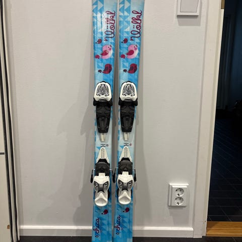 Lasten laskettelusukset, kunto muuten erinomainen mutta toisen suksen kärkisuoja rikki, ei haittaa laskemista, osan voi myös vaihtaa. Kantit uutta vastaavat. Yhden lapsen käytössä ollut ja sukset on uutena meille hankittu. Markerin grip walk -siteet. Sauvat 100 cm kaupan päälle.