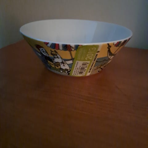 Kuvien mukainen käyttämätön muumi kulho Niiskuneiti ja Runoilija 2013.