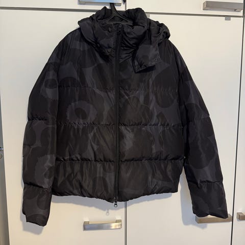 Vain muutaman kerran käytetty, kuin uusi tyylikäs unikko untuvatakki.