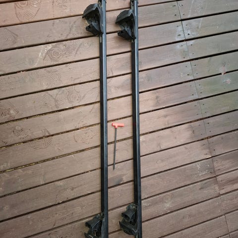 Thulen hyvät ja helppokäyttöiset kattotelineet. Sopivat ainakin Volvo XC90 2015->. Mukana kaksi avainta.