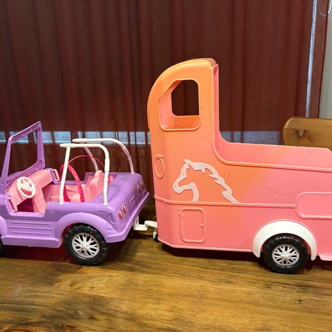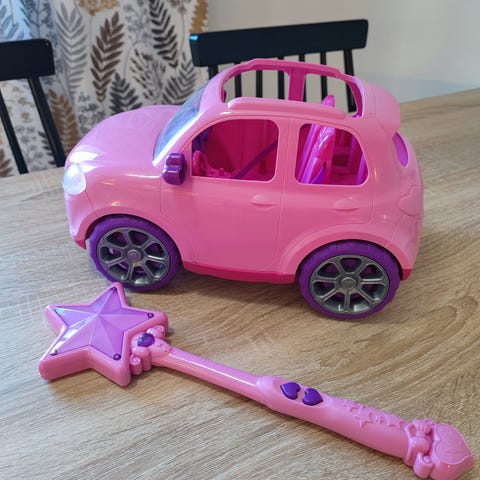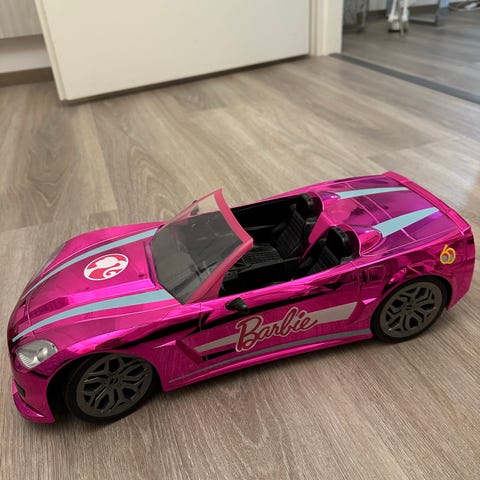 Barbie lasten leluauto, jossa kauko-ohjain. Toimii. Muuten siisti, mutta tuulilasissa halkeama, näkyy kuvassa.