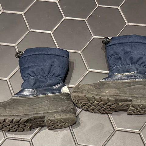 Meille uutena ostettu ja olleet viime talven aktiivisessa käytössä. Muuten hyvä käytetty kunto, mutta kärjistä keinonahkatyyppinen pinnoite kulunut. Pohjissa myös kantapäissä sen verran kulumaa, että punainen väri vähän hävinnyt.