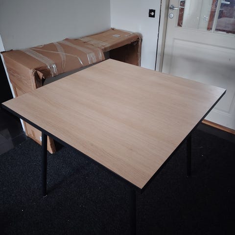 Pöytä ei ole uusi, siinä on virheitä, jotka näkyvät kuvassa.
