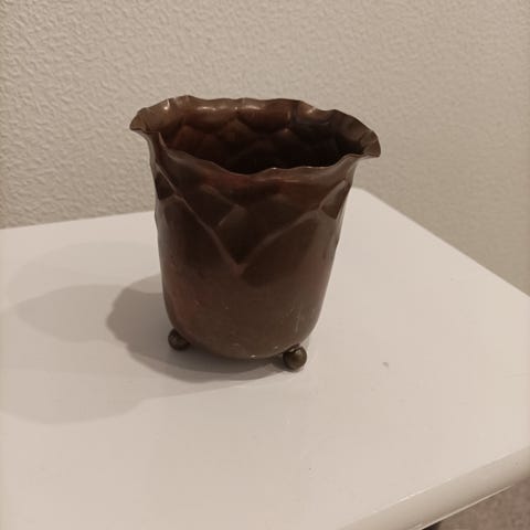 Kulho on kiillotettu ja hyväkuntoinen, kuparissa pientä ajan patinaa, joka antaa kaunista vanhan esineen ilmettä. Sisäpinta vihertynyt ajan myötä (ei vaikuta koristekäyttöön).