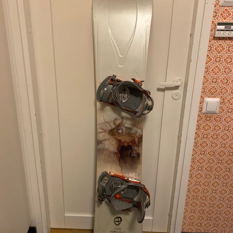 Hyväkuntoinen lumilauta seuraavalle käyttäjälle. Kantit ovat ehjät eikä pohjaa ole paikattu. Huollettu hiljattain.