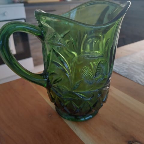 Myydään vihreä Ohdake kannu ja 1 samaan sarjaan kuuluva lasi.