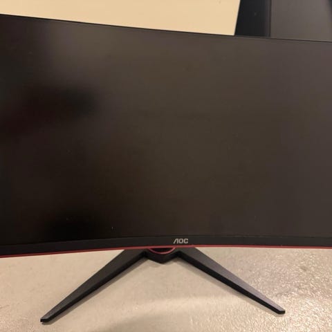 AOC:n 23,6-tuumainen 60Hz-näyttö. Mukana virtajohto. Toimii moitteetta. Näytössä pieni vuosia sitten tullut naarmu, ei huomaa kovinkaan paljoa näytön ollessa käytössä.