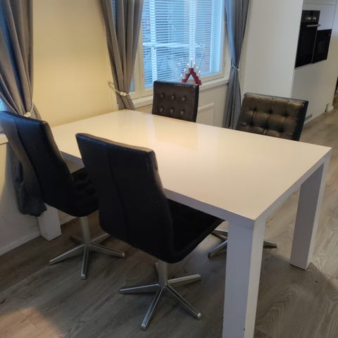 Ruokapöytä, mahtuu kuusi henkeä. Ollut jatkettava mutta jatkopalat ei enää tallella.