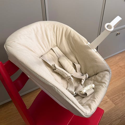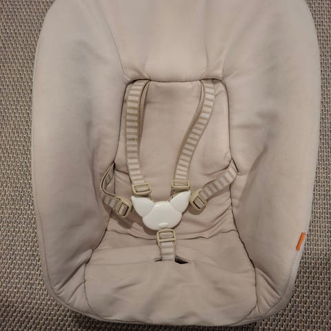 Myydään erittäin hyväkuntoinen vastasyntyneen istuinosa trip trap tuoliin. Säädettävissä kahteen eri asentoon.