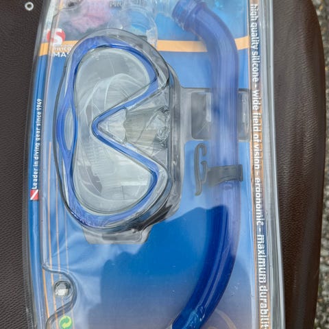 Käyttämättä jäänyt snorklaus setti, räpylät, maski ja sorkkeli