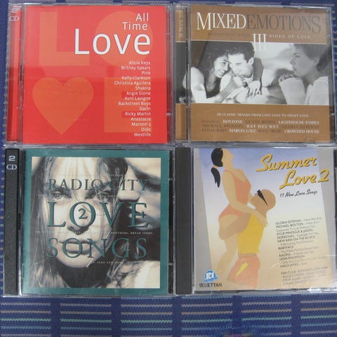 Myydään love kokoelma cd-levyjä 3,00 euroa kappale. Kaikki cd:t kuunneltu ja todettu toimiviksi. Cd:ssä voi olla naarmuja & kansipapereissa jälkiä/omistuskirjoituksia, mutta cd-kotelot ovat ehjät. Postituskulut ostajalle ja noutokin sovittavissa.
