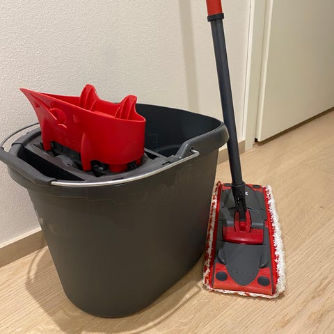 Varastosta löytynyt vanha, mutta käyttämätön Viledan moppi ämpäri. Kuvan osat mukana, myös kahva ämpäriin. Moppi leveimmillään 37 cm.