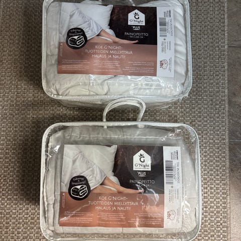 Myydään hyväkuntoinen Mascot -merkkinen painopeitto. Painopeitto on ollut kahdella lapsella käytössä nukahtamisen tueksi. Peitolla on ikää 7 vuotta, mutta on hyvässä kunnossa.