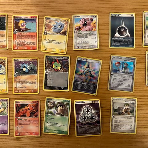 27 Pokémon-keräilykorttia, joka sisältää kortteja eri hahmoilla ja ominaisuuksilla. Kortit ovat värikkäitä ja sisältävät hahmojen kuvat, nimiä, hyökkäyksiä ja erikoisominaisuuksia. Sopii keräilyyn ja pelaamiseen. Kaikki kortit ovat hyvässä kunnossa.