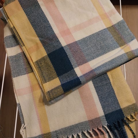 Sydänkuvioinen huivi. Merkistä ja koosta ei tietoa. Muutaman vuoden vanha, vähäisellä käytöllä.