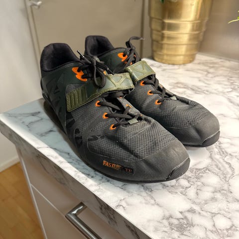Miesten painonnostokengät koossa 42,5. Soveltuu hyvin crossfit harjoitteluun, koska kengät kärki hieman joustavampi kuin perinteisessä painonnostokengässä,