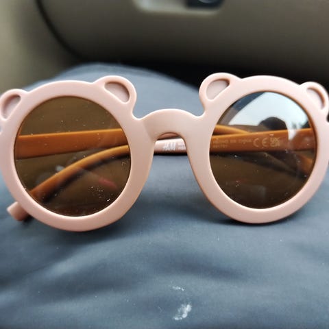 Värisävy on eri oikeasti. En saanut kameralle sitä. Siniset kuitenkin. Haaleamman siniset, ei näin kirkkaan siniset. 0-3 vuotiaille. Pieniä micro naarmuja linsseissä. Eivät varmasti haittaa vauvaa.