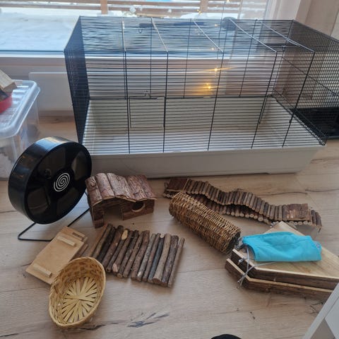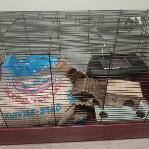 Hamsterin häkki ja tarvikkeet.