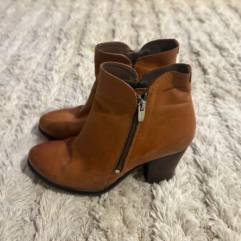 Hyväkuntoiset muutaman kerran käytetyt Wondersin naisten mustat nahkaiset korolliset nilkkurit.