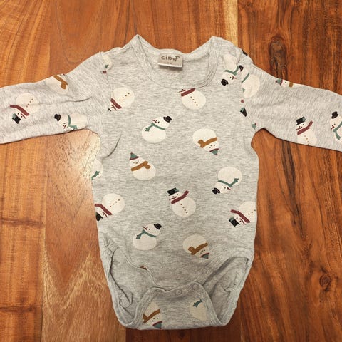 Lumiukko aiheinen puuvilla mekko sopii 6-12kk (68-80) kokoiselle, Hyvä kunto. Tähän saa mukaan settiin kuuluvan valkoisen bodyn.
