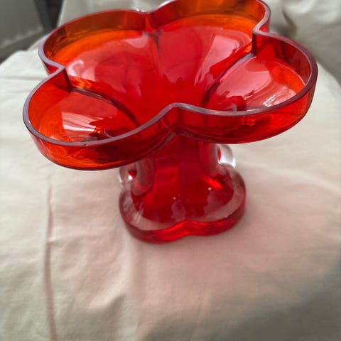Riihimäen lasi Onnenlehti maljakko maljakko punaista lasia.