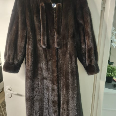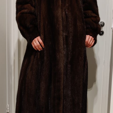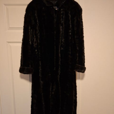 Liisa Andström pitkä turkistakki, koko 44. Valmistaja Saga mink.