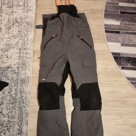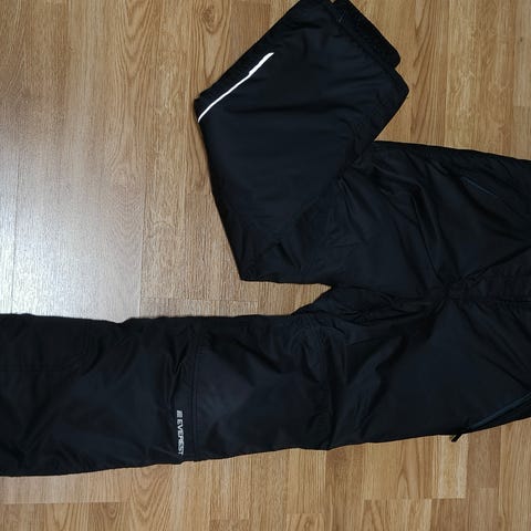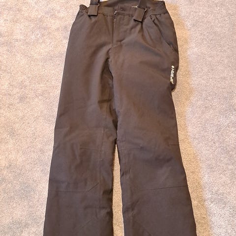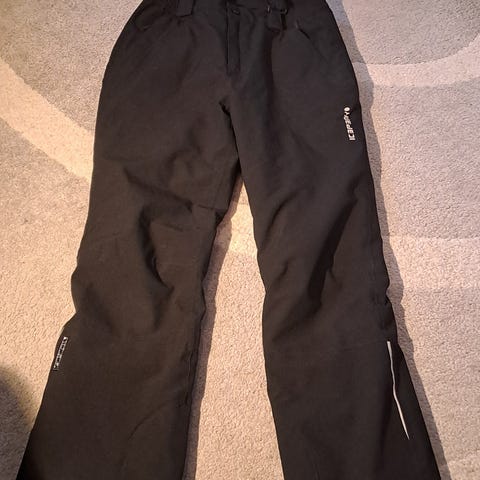 Myydään vähän käytetyt mustat vedenkestävät 152 cm kokoiset toppa-/lasketteluhousut.