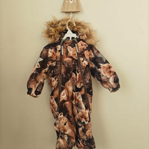 Erittäin hyvässä kunnossa. Ei kulumaa. Meille uutena ostettu ja käytetty vain lumisilla pakkaskeleillä. Aran värin vuoksi ehkä hieman värjäymää leuan kohdalla jos tarkkaan katsoo, sulautuu hyvin kuvioon.