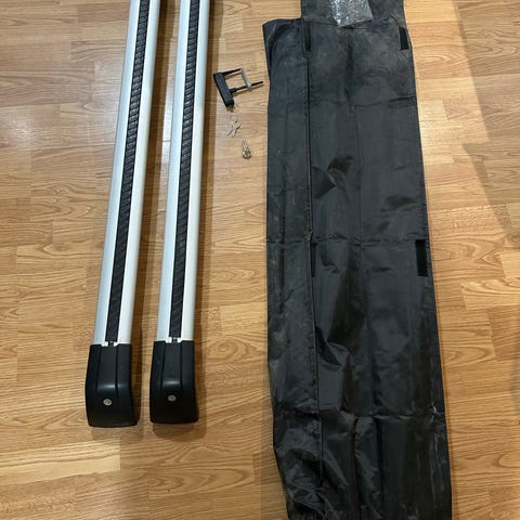 Laadukkaat, matalaprofiiliset Thulen alkuperäistelineet. Helppo ja nopea asennus. Myydään suoraan käytöstä.