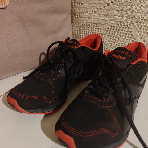 Reebok Salitreeni lenkkitossut, koko 37. Musta väri, pinkit nauhat. Soveltuvat salitreeniin. Valmistettu hengittävästä materiaalista.