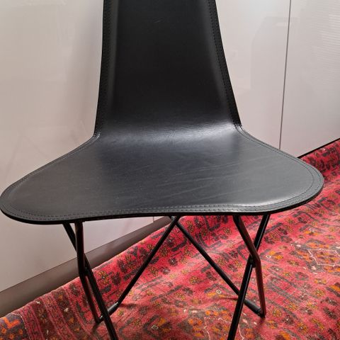 Tuolissa on mattakromirunko. Istuinosan materiaali on kestävää kasviparkittua italialaista Pampa-nahkaa väri musta.