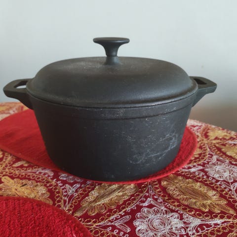 Myynnissä kuvan valurautainen pata. Vetoisuus 2,2 litraa