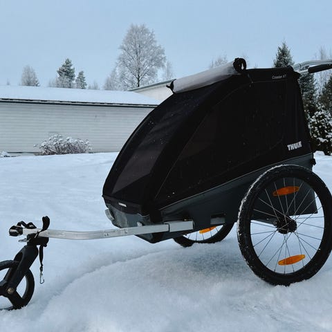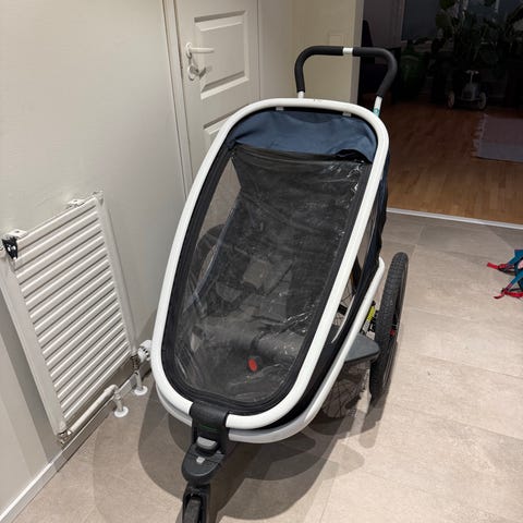 Hyvä pyöräkärry! Toimii loistavasti rattaina.