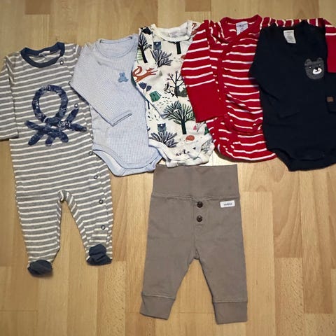 Siisti, iso vaatepaketti. 15 housut, 12 bodya, 4 yökkäriä, paita ja myssy. Merkkeinä Newbie, Polarn O. Pyret, Lindex, Guppy yms.