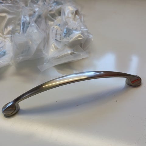 Myydään hopeiset vetimet 27 kpl, reikäväli 160 mm. Hyvä käytetty kunto. Ruuvit mukana.