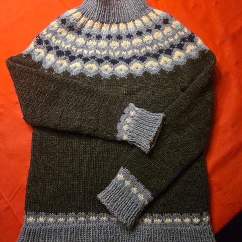 Myydään käsin kudottu villapaita. Ollut pari kertaa päällä, koska olikin liian pieni. Koko vastaa lähinnä kokoa 128 cm.