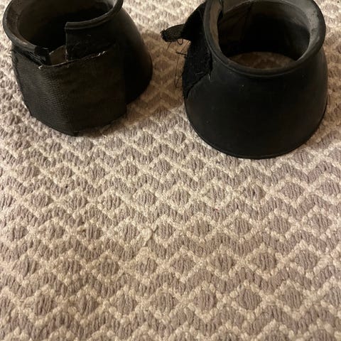 Siniset glitterputsit koko M 2 kpl ja violetti kumiputsit 2 kpl koko L.