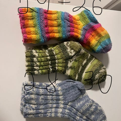 Käsin neulotut villasukat sinivihreät/petroolin värisetkoko noin 40