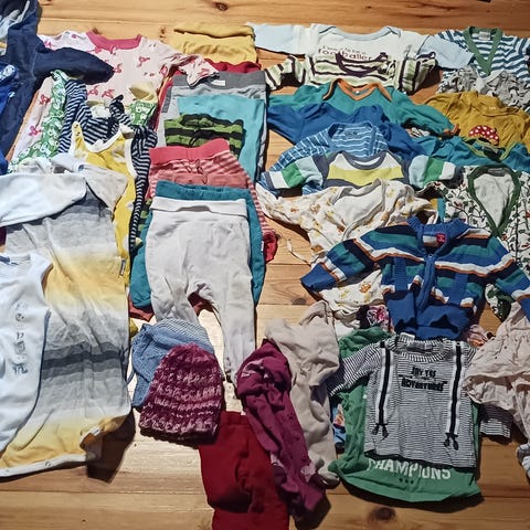 Siisti vaatepaketti koko 50/56. Yökkäri, 5 housut, 5 bodya, myssy ja kypärämyssy.