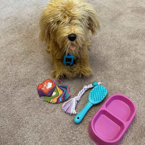 Viime jouluna saatu, vähän leikitty. Linkki https://www.karkkainen.com/verkkokauppa/my-fuzzy-friends-moji-labradoodle-interaktiivinen-koira
