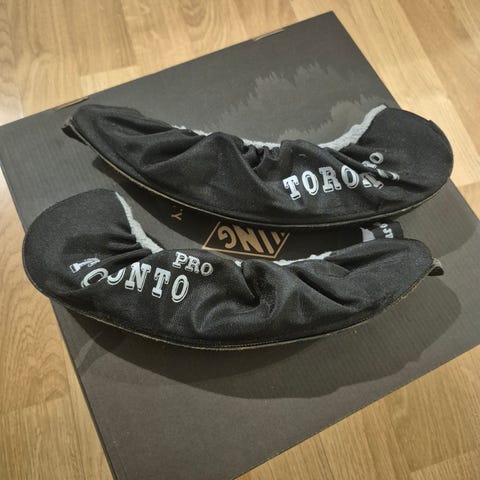 Käyttämättömät teräsuojat luistimiin. Skaboots. Pari 25€. Molemmat luistinsuojaparit 45€.